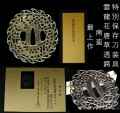 銘:表【-】 裏【 -】 付属品:特別保存刀装具鑑定書 種別:鍔 サイズ:縦:8.3cm 横:7.8cm 厚さ:0.5cm 鍔重量:100g